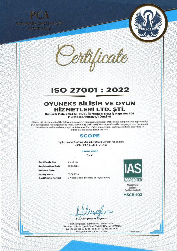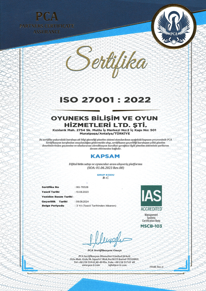 E-pin ürünleri kod olarak teslim edilir ve iade kabul edilmez.