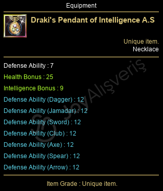 Draki's Pendant of Intelligence A.S