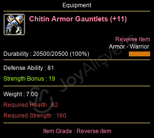 Rev. Chitin Armor Gauntlets (+11) (+1 Item)